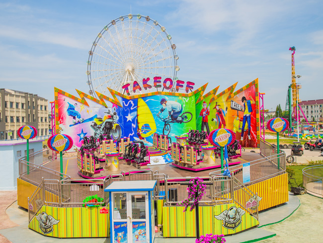 Take-off, also known as rotating heaven and earth. Is my company following the new rocket bungee jumping and interplanetary buses, the development of the domestic first gyro class large-scale recreational facilities. The use of advanced hydraulic, frequency conversion technology and non-foundation structure. In operation, the occupant not only with the cockpit rotation and rotation with the turntable, while the turntable in the course of operation can do variable tilt movements, so that passengers fully experience the new composite fun. The magnificent equipment, decorative luxury, is a fun place and carnival activities in the rare pleasure of boutique.